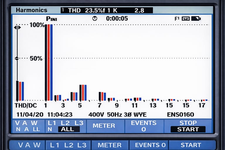Estas distorsiones se miden normalmente mediante análisis de calidad de energía utilizando equipos especializados.